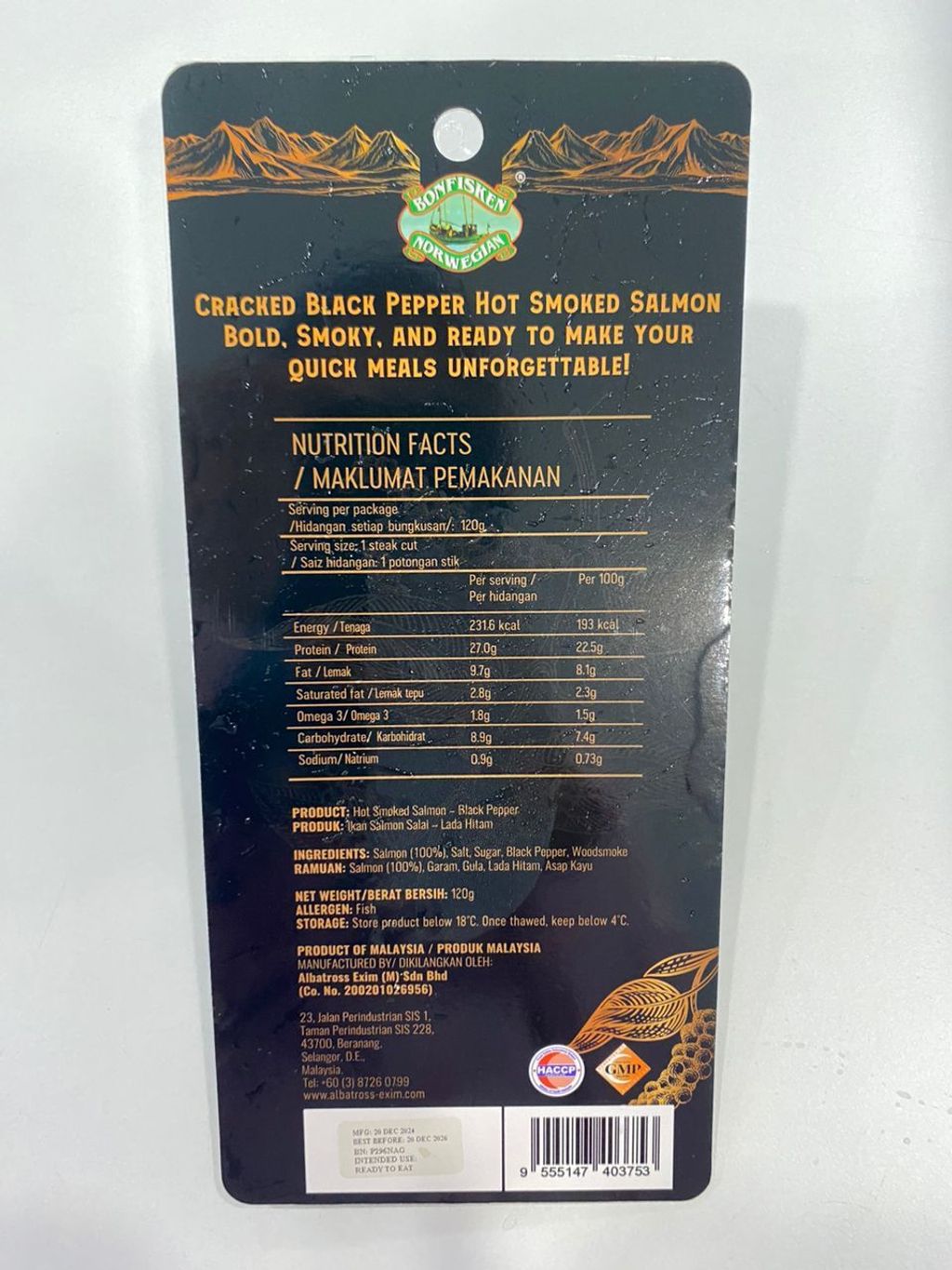 HOT SMOKED SALMON - BLACK PEPPER; 120GM/PKT
